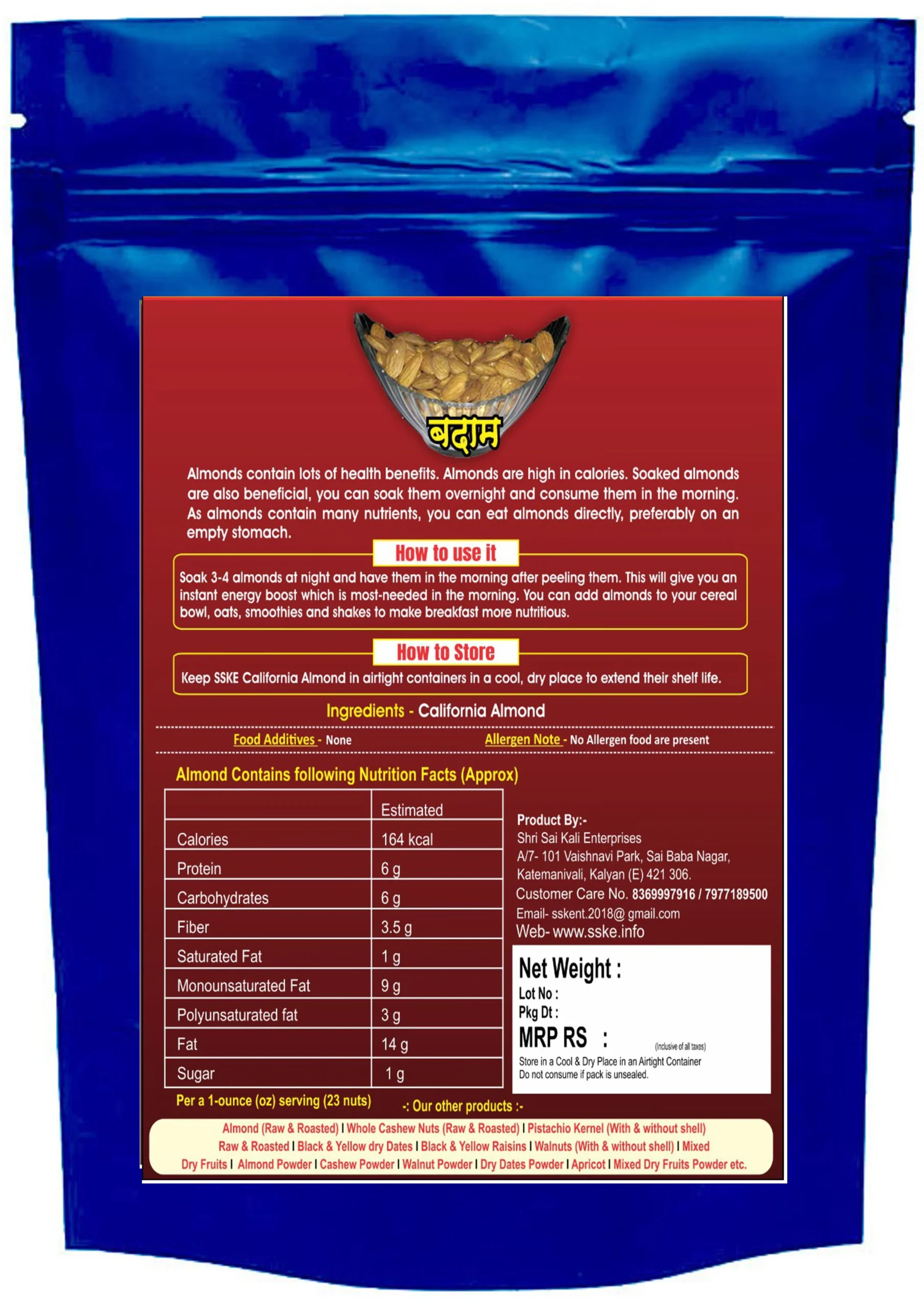 These almonds aren’t just delicious—they’re full of protein, fibre, healthy fats, vitamin E, and key minerals. They’re good for your heart, boost immunity, and keep your energy up. Eat them on their own, toss them into sweets, blend them in smoothies, or add them to your favourite festive dishes—SSKE California Almonds (Badam) bring both taste and nutrition, no compromises.