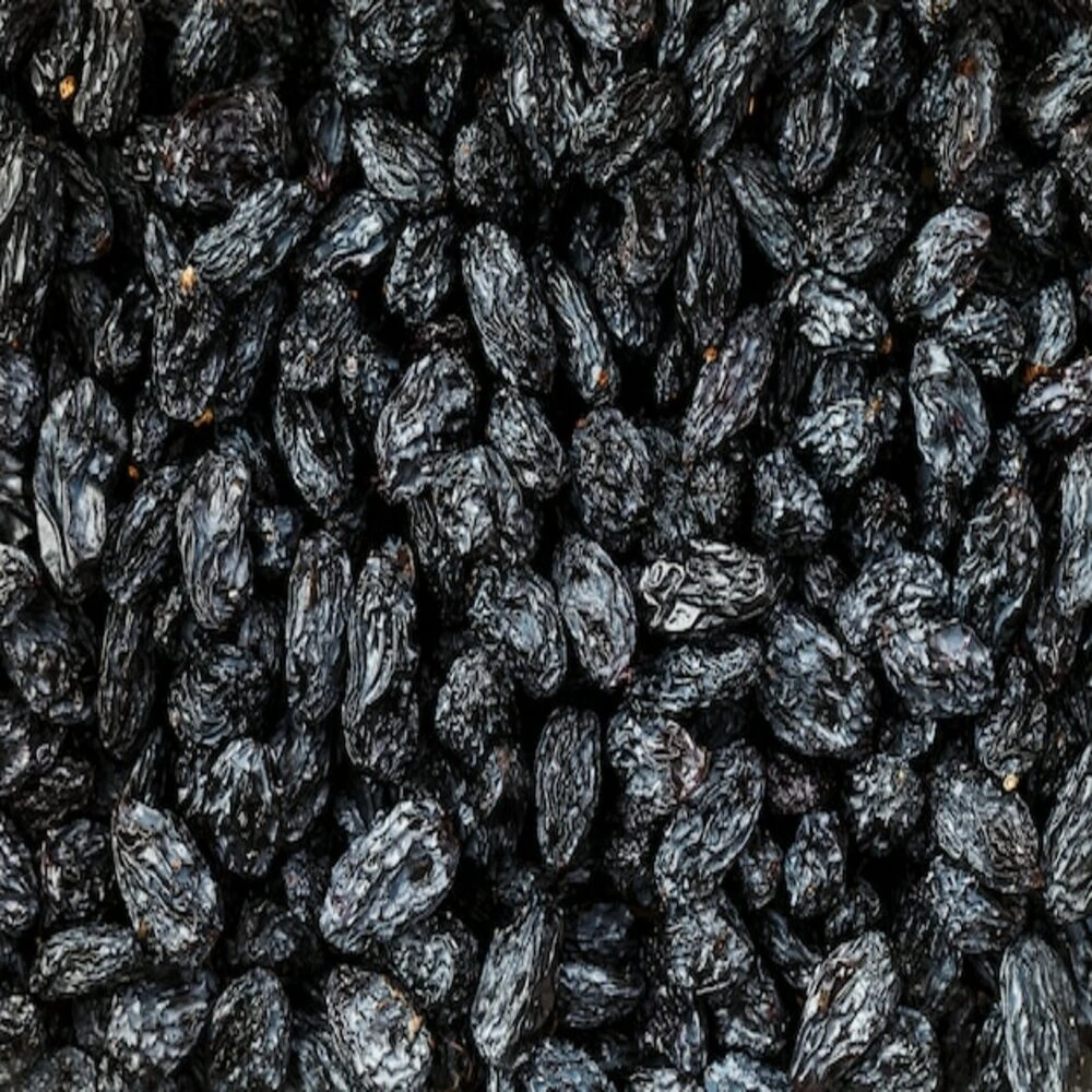 SSKE Premium Black Raisins (Kali Kishmish) are carefully selected from the finest quality grapes and naturally sun-dried to preserve their rich flavor, softness, and nutritional value. These seedless black raisins are known for their deep color, natural sweetness, and chewy texture, making them a perfect addition to your daily diet.